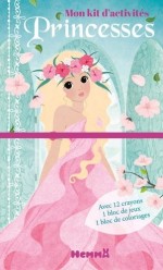 Mon kit d'activités Princesses (fond bleu) - Avec 12 crayons de couleur, 1 bloc de jeux, 1 bloc de coloriages