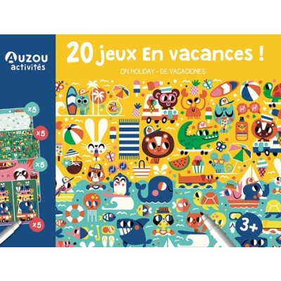 20 super petits jeux à faire et à refaire, sur le thème de l'aventure ! Une pochette de jeux à partir de 3 ans ! Au recto des cartes, amuse-toi avec des labyrinthes, des points à relier, des cherche et trouve, des différences... Rassemble ensuite les cartes côté verso pour reconstituer un cherche et trouve géant ! 20 jeux plastifiés à faire et à refaire ! Inclus : 1 feutre effaçable et 2 cartes solutions.