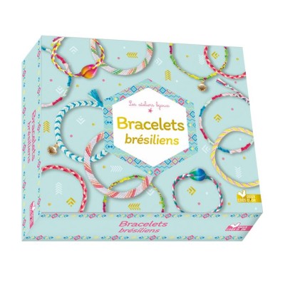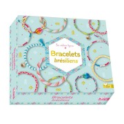 Mes bracelets en perles de papier - Avec 2 cordons élastiques, 4 perles à facettes blanches, 4 perles de rocaille transparentes, 1 pompon fluo, 3 feuilles de motifs et 1 feuille fluo à découper, 1 tube de colle, 2 bâtonnets en bois et 1 petit pinceau