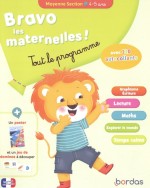 Bravo les maternelles - Tout le programme - Moyenne Section est un cahier rassurant et ludique qui permet à votre enfant de 4-5 ans de revoir toutes les notions abordées durant l'année de moyenne section. La mascotte Filou l'accompagnera tout au long de l'aventure et lui donnera des astuces pour réussir les activités, les jeux et les exercices de relaxation. Le cahier d'activités Bravo les maternelles - Tout le programme - Moyenne Section rassemble toutes les notions vues en classe et propose à l'enfant des activités ludiques, illustrées et progressives. Le cahier s'adresse également aux parents avec des conseils figurant au début de l'ouvrage. En Moyenne Section, l'enfant est accompagné tout au long du livre par le petit lion, Filou, qui lui pose des questions, lui donne des conseils et l'encourage. Les notions se répartissent en 5 domaines : Graphisme : maîtrise du geste ; reproduction de formes simples Ecriture : écriture de toutes les lettres en capitales ; écriture de mots Lecture : compréhension d'histoires ; reconnaissance des lettres ; identification des syllabes ; association de mots Maths : reconnaissance et écriture des chiffres de 1 à 6 ; dénombrement des quantités de 1 à 6 ; reconnaissance de formes Explorer le monde : repérage dans l'espace et le temps ; découverte du vivant (éléments naturels, plantes, corps humain) Et en + : Des activités de relaxation (temps calme) à partager en famille + 110 autocollants en couleur Un poster en cadeau pour découvrir les animaux marins Un grand jeu de domino des mots à fabriquer soi-même La collection Bravo les Maternelles se compose de : 4 cahiers tout-en-un pour revoir toutes les notions au programme de la toute petite section à la grande section ; 4 supports effaçables de la toute petite section à la grande section ; 4 blocs de coloriages variés et progressifs autour de thèmes attractifs ; 3 gros cahiers d'activités : maths, anglais et multimatières 4 cahiers pour initier l'enfant aux graphismes, à l'écriture, à la lecture ; 2 cahiers pour l'aider à améliorer sa concentration et à gérer ses émotions. Ce cahier est imprimé en France par un imprimeur certifié Imprim'vert.
