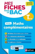 Des fiches simples et claires pour un maximum d'efficacité en Maths complémentaires (enseignement optionnel) Terminale. Conforme à la réforme du lycée - 50 fiches détachables au format poche pour réviser un peu tout le temps, avec des bulles d'aide : astuces du prof, remarques, pièges à éviter... - Des synthèses sur tout le programme. - Les formules et les méthodes indispensables. - Des quiz pour s'auto-évaluer. Et en plus ! - Un système pratique pour suivre ses révisions. - Des mémentos calculatrices sur les rabats de couverture. - Des exos interactifs avec Nathan live : QCM, relier...