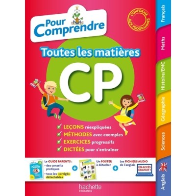 Tout ce qu'il faut savoir et savoir faire dans toutes les matières ! Une double page par notion, avec : le cours, clair et complet, illustré par de nombreux exemplesun exercice corrigé pas à pas pour montrer à l'enfant comment bien appliquer le cours dans les exercicesde nombreux exercices progressifs pour s'entraîner En anglais : les fichiers audio MP3 des mini-dialogues à télécharger gratuitement. Tous les corrigés détachables dans le Guide Parents