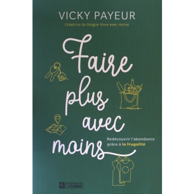 Les choses qui nous font du bien sont les plus simples, mais le tourbillon de la vie nous éloigne souvent de ce qui compte vraiment. Ensevelis sous le trop-plein d'objets, de tâches, de dettes et d'obligations, on arrive rarement à prendre soin de soi, des autres et de la planète autant qu'on le souhaiterait. Simplifier sa vie un jour à la fois en adoptant un quotidien minimaliste pourrait être la solution, une piste pour trouver le bonheur et l'équilibre. Que vous n'y connaissiez rien ou que vous ayez tout lu sur le sujet, vous découvrirez dans ces pages l'inspiration pour poursuivre votre cheminement vers une existence plus significative. Après tout, vivre avec moins, c'est mieux ! Et si le bonheur tenait réellement à peu de choses ? Vicky Payeur dépensait sans compter, croyant ainsi mener une vie normale de jeune adulte. Sa dette de consommation est rapidement devenue impossible à ignorer. Elle devait changer quelque chose. Du jour au lendemain, elle a choisi d'adopter les principes du minimalisme et de la simplicité. Choisir la simplicité et vivre avec moins, c'est retourner à l'essentiel tout en vivant au sein d'une société de consommation. Ce livre vous guidera à travers ce grand changement, peu importe votre motivation initiale ou votre connaissance du minimalisme. L'auteure partage ouvertement son histoire et les fruits de quatre années de découvertes et de prises de conscience. En plus des réflexions et conseils pour débuter, Vicky Payeur aborde des sujets peu traités dans les ouvrages sur le minimalisme, par exemple l'aspect psychologique. En effet, que reste-t-il à faire lorsqu'on a désencombré la maison, qu'on n'a plus de dettes et qu'on se connaît mieux en tant que personne ? Ce livre est peut-être celui que vous attendiez depuis longtemps. Installez-vous confortablement, votre nouvelle vie ne fait que commencer !